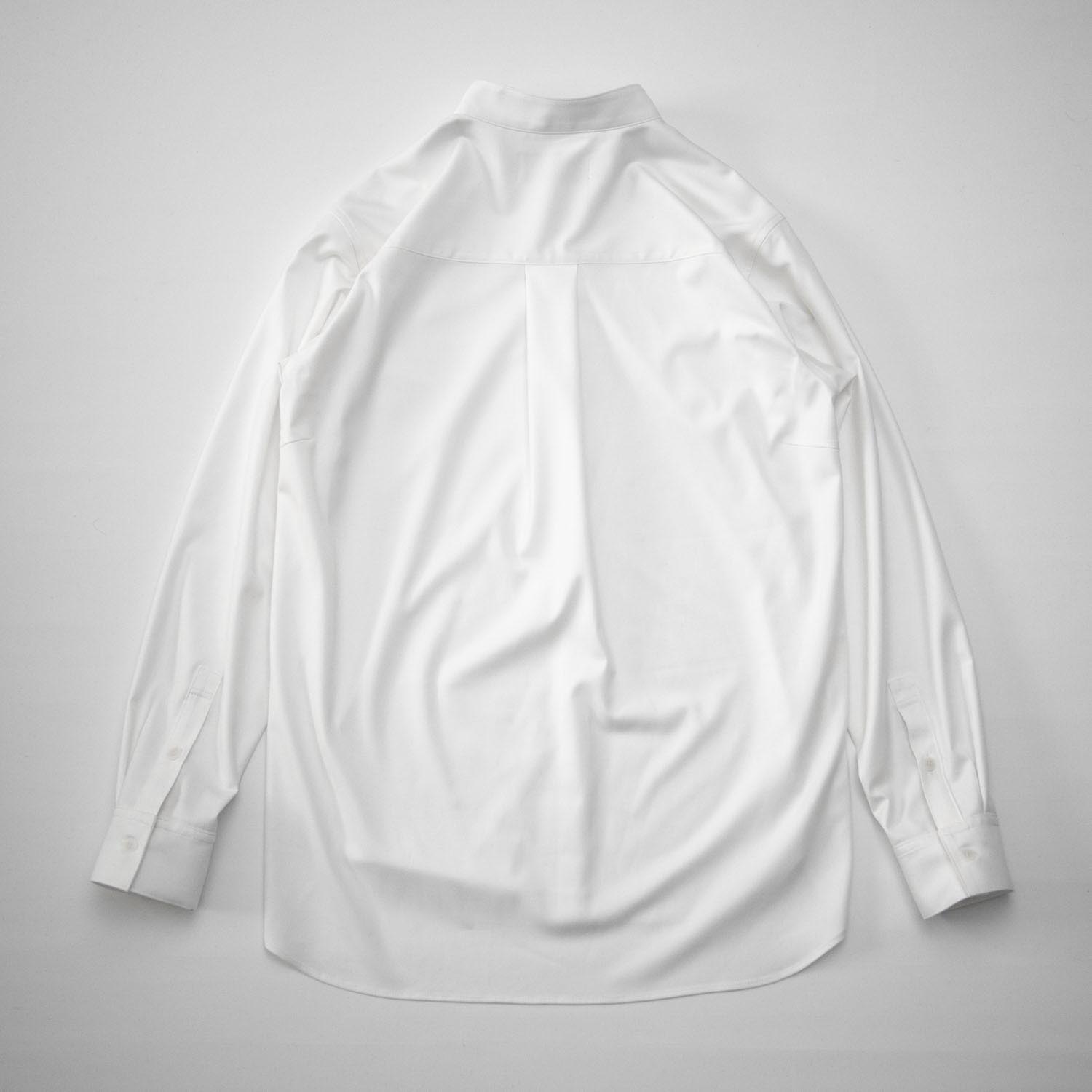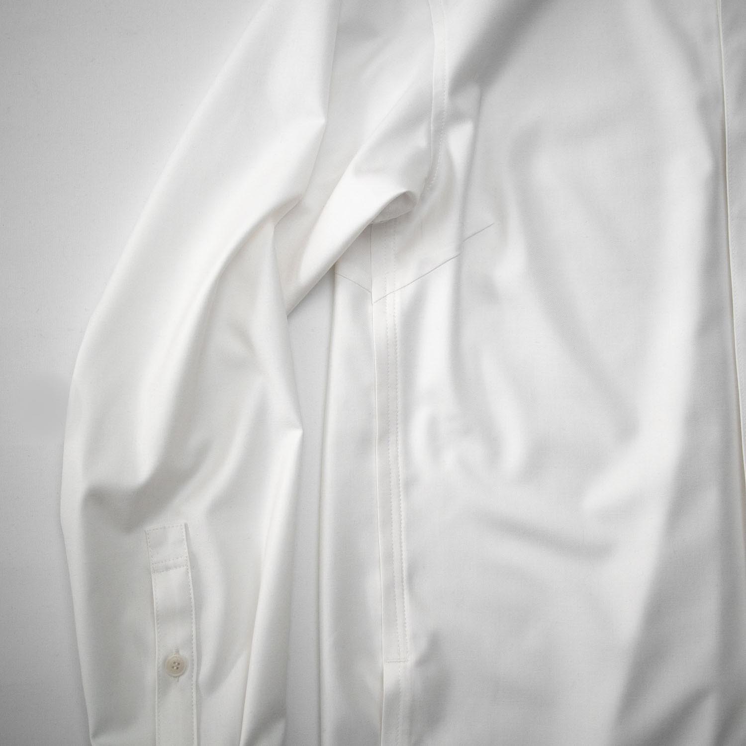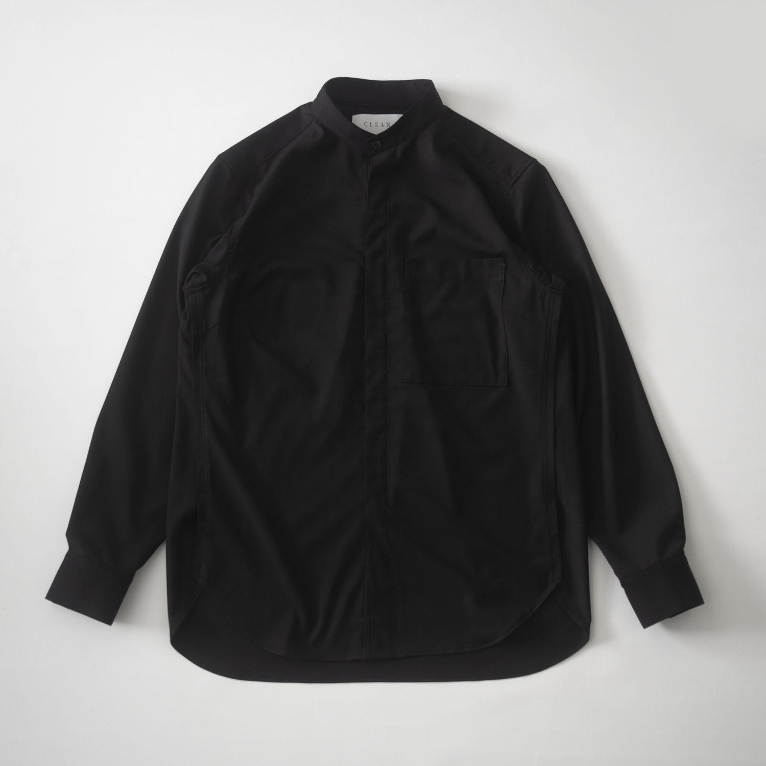 イージーケア素材を使用した比翼開きのスタンドカラーシャツ